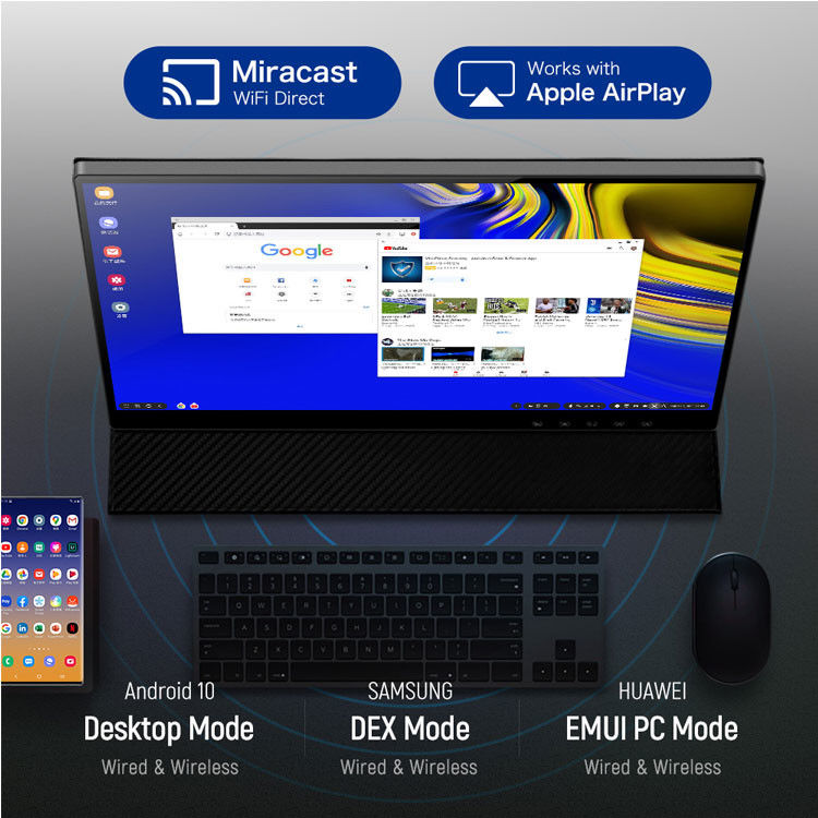 มอนิเตอร์นี้รองรับการถ่ายทอดวีดีโอแบบไร้สาย ทําให้การส่งเนื้อหาได้โดยตรงจากสมาร์ทโฟน แท็บเล็ต หรือคอมพิวเตอร์แล็ปท็อป โดยไม่ต้องใช้สาย ซึ่งทําให้การติดตั้งและการใช้งานในห้องประชุมง่ายขึ้นสถานที่ฝึกอบรมและการแสดงสินค้าด้วยความสอดคล้องกับ Apple AirPlay และ Miracast ผ่าน WiFi Direct ผู้ใช้สามารถแบ่งปันการนําเสนอ ภาพหรือจอในเวลาจริงได้อย่างรวดเร็วและปลอดภัยทําให้พื้นที่ทํางานสะอาด, และทําให้จอแสดงผล เหมาะสําหรับสภาพแวดล้อมการร่วมมือ, การแสดงเคลื่อนไหวและฉากการบูรณาการระบบที่ยืดหยุ่น