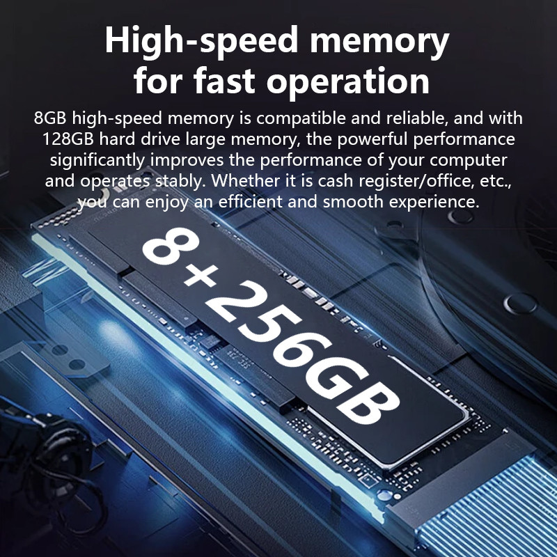 กับแรม 8GBและการถือศีลSSD ขนาด 256GB, เทอร์มินัล POS นี้ทําให้การทํางานร่วมกันได้เรียบร้อย, การเข้าถึงข้อมูลอย่างรวดเร็ว, และการทํางานที่มั่นคงภายใต้ภาระงานที่สูงขณะที่ 256-GB Solid-State Drive ให้ความสะอาดที่พอเพียงสําหรับฐานข้อมูลสินค้า, บันทึกธุรกิจ และข้อมูลลูกค้า ✅ ทั้งหมดด้วยเวลาเริ่มต้นที่เร็วขึ้นและการตอบสนองของระบบที่ดีขึ้นและศูนย์การค้า.