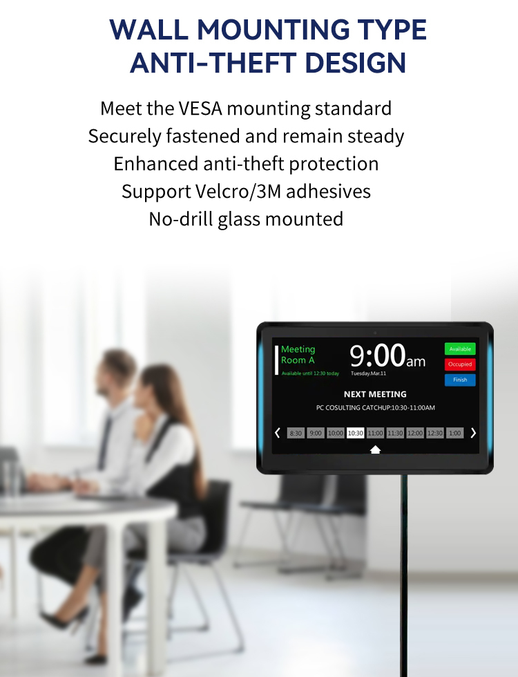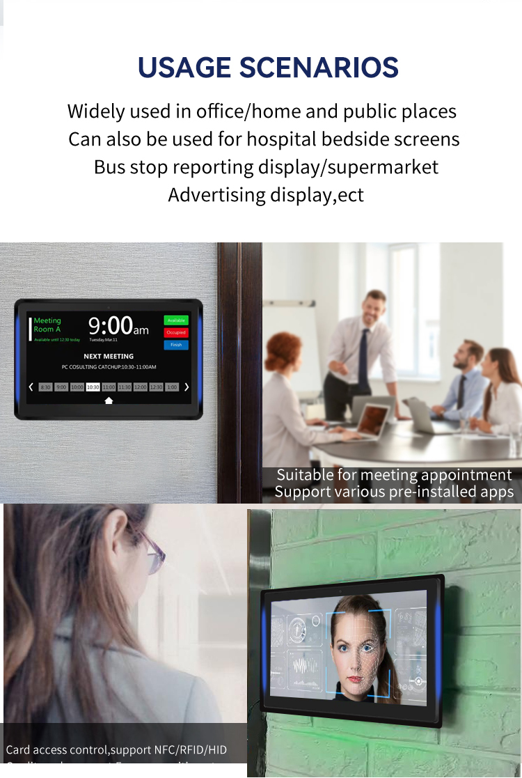 แท็บเล็ตนี้ไม่เพียงแต่เหมาะสำหรับการจองห้องประชุมเท่านั้น แต่ยังทำงานได้ดีเยี่ยมในฐานะเครื่องเล่นป้ายดิจิทัล เทอร์มินัลควบคุมการเข้าถึงอัจฉริยะ หรือตู้บริการตนเองแบบโต้ตอบในอาคารขององค์กร โรงแรม โรงพยาบาล และสถาบันการศึกษา สำหรับผู้รวมระบบและผู้จัดจำหน่าย เป็นโซลูชันอเนกประสงค์ที่ตอบสนองความต้องการของโครงการหลายโครงการด้วยแพลตฟอร์มฮาร์ดแวร์เดียว